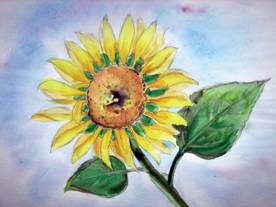 การวาดภาพทางวิทยาศาสตร์ดอกทานตะวัน เทคนิคสีน้ำและดินสอสี